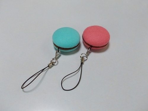 今日はスイーツストラップです♪マカロンでマグネットを作ったのでストラップも作ってみました。このマカロンもマグネットと同じつつみボタンを使用しています。左がチョコミント、右がクランベリーです。