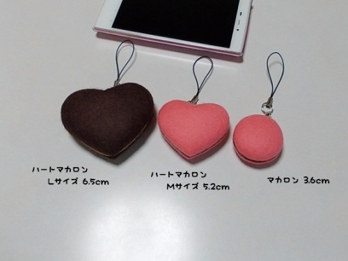 今日はスイーツストラップです♪マカロンストラップに続き、ぷっくりハートが可愛い♪大きいサイズのハートマカロンのストラップも作ってみました。大きさは2種類。ハートマカロンマグネットと同じ大きさのMサイズと、存在感バッチリのLサイズ。Lサイズはストラップ金具を変えるとバッグチャームとしても使えそうです。