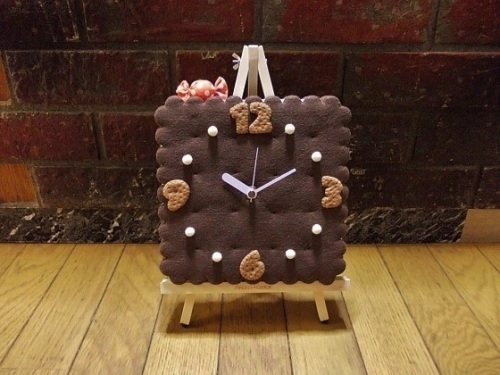 今日は【SWEETS*CLOCK】シリーズ、お菓子の時計です♪クリームをはさんだチョコビスケットのスイーツ時計です。今回、文字位置のクリームと数字のビスケットを少しだけ変えました。