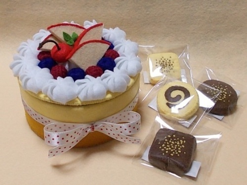 今日はアップルカスタードケーキのスイーツBOXです♪カスタードプリンをイメージしたケーキにアップルとベリーをのせました。内布はクッキー柄にしたので、クッキーマグネットも一緒に作ってみました。