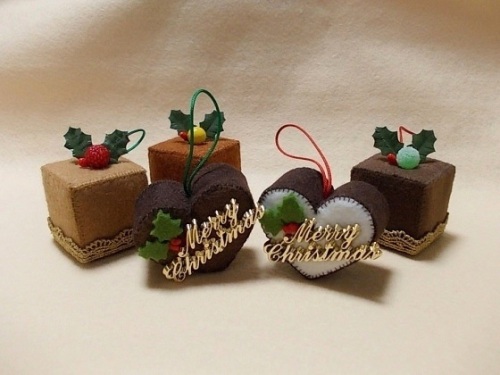 今日はチョコケーキのスイーツオーナメントです♪大人可愛いチョコレートケーキのクリスマス用オーナメントです。四角3種とハート型2種のセットになります。ツリーに飾って可愛いスイーツクリスマスに♪