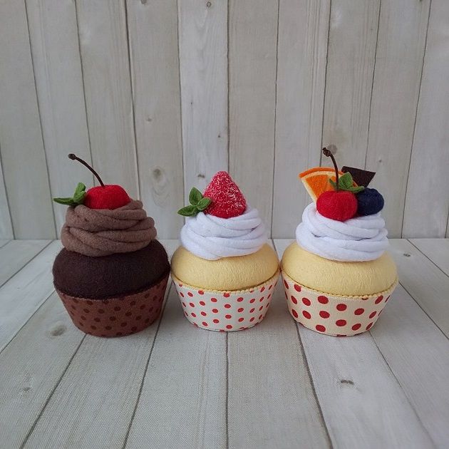カップケーキの小物入れ、3種再販です♪左から、・カップケーキ(チェリーチョコ)・カップケーキ(イチゴバニラ)・カップケーキ(フルーツカスタード)