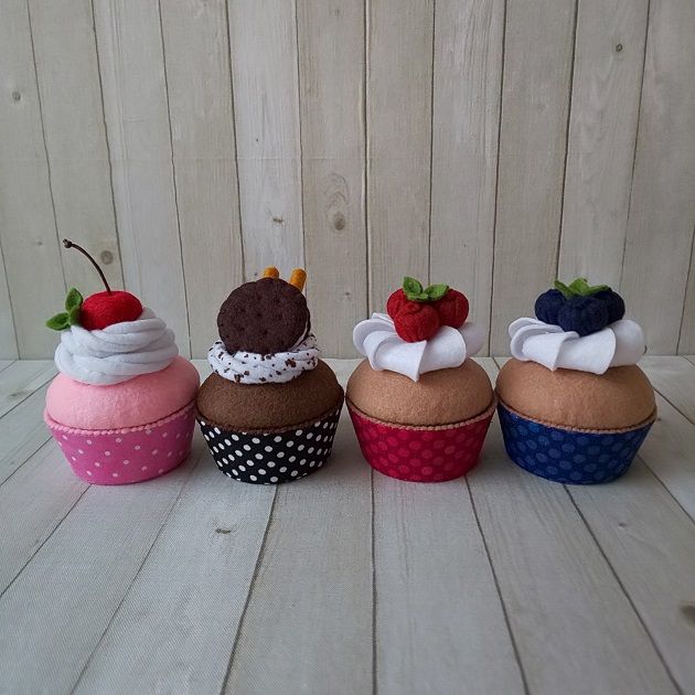 カップケーキの小物入れ、4種再販です☆左から、・カップケーキ(チェリーストロベリー)・カップケーキ(クッキー&クリーム)・カップケーキ(クランベリー)・カップケーキ(ブルーベリー)