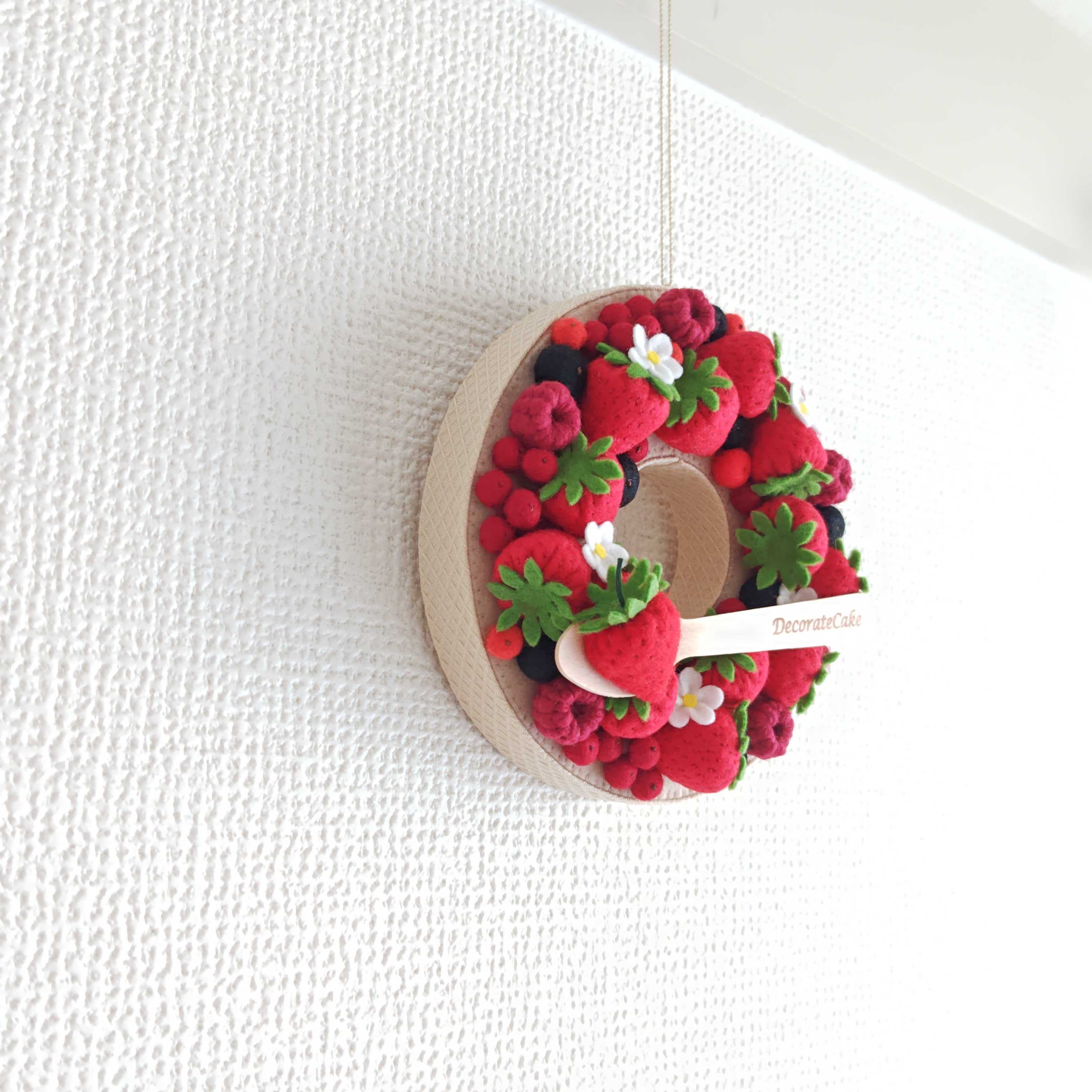 壁に飾れるケーキのリース。