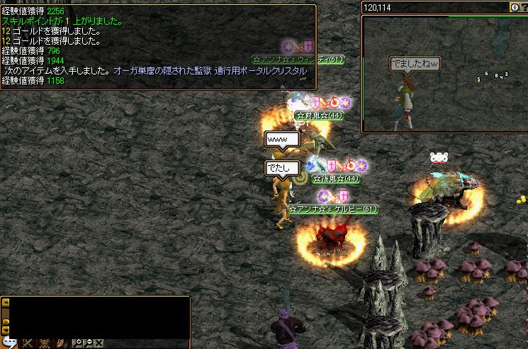 久しぶりだねぇ諸君w暇だから更新しにきたじぇwなぜ更新しなかったといぅと・・・少しRSを離れていたわけで・・・よぅはあきt(ryな、なんでもありません・・・気にしなぃで(*´∀`*)ところで・・・新鯖ができたといぅことで俺も新鯖(橙鯖)にキャラつくってみましたwこぃつです!!!一緒にいるのはほぼリア友と言ってもいいよぅなかずとんですw名前だけでよく見えないって?残念ながら他のSSなぃので教えてあげましょぅ・・・戦死です!!!間違えましたw戦士ですつくってそぅそぅ戦士飽きたのでこんなのも作ってみました秘密に寄生しよぅかと・・・wでも・・・41~54Lvって秘密なぃんですよね・・・なので鍵も放置してますwその後青鯖に戻りソロPTに入って狩っていたところ他の方が・・・ぬぉ!!!?RED STONE・・・(*´Д`*)ハァハァそしたらその人がこんなことを・・・贅沢すぎです!!!でただけでもいいじゃなぃですか・・・俺なんて・・・俺なんて・・・2時間ソロで無限矢9本ですょ!!!こんなにいらねぇって・・・そぅいえば・・・これは噂なのでが・・・テイマの運がPのクリ率だけに関係するよぅになりドロップ率に影響しなくなると聞いて・・・せっかく運テイマつくったのにぃ!!!と嘆いていたら・・・ひらめいた!運剣士作ればいいんだ!!!そこで最近作ったエンチャWIZ73Lvを消し剣士作りましたwこぃつ!橙鯖の戦士の名前と一緒なのは気にせずにw~1時間半後~やっぱり強制ギルハンはいいですねぇ♪今回も無理矢理ゆうういちとライチュウさんのサブを連れ出してレベル上げ手伝ってもらいましたw明日からも無理矢理ギルハンしよっと(*´∀`*)まぁ蟲秘密レベルくらぃは秘密いって自分であげますが・・・wってことでレベル上げ手伝っちゃる!っていぅそこのあなた!!!・・・あなたですょ?わかってます?いつでも耳くださぃな^^ギルメンじゃなくても大歓迎ですwそれでは明日は1500m走があるのでこのへんで!!!パオーンこもっw