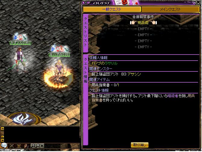 最近眠れませんどぅもハオです最近夜になっても目がバッチリあいてるので中々ねつけずに朝になってしまぅ。。。まぁ夏休みの特典ってことでいいかwwそぅいや倉庫のBIS君も銀行クエをしてきましたいつも手伝ってくれるのんさんには本当に感謝しております折角銀行クエ6までやったのにネクロ、悪魔がやりたぃといぅ気持ちに負けBISを消すことにwwwこれで何ヶ月分くらぃのんさんを無駄に働かせただろ・・・その時間自分のレベ上げしてればいまごろは400・・・・(((( ;゜Д゜)))ガクガクブルブルブルブル ってなことでクエダブもらうついでにピカプでお別れ会しました最後にかっこよく決めておくれよ・・・何気にこのBIS今いる4キャラのうち一番古いキャラなので・・・もったぃなくて削除が中々おせませんでしたしかし明日にせまっている(当時はw)ネクロのために・・・ポチッ!今までありがとぅ♪次は追放されなぃよぅに頑張ってね(・_・、)当日になって使いたい名前がなぃ!ってなったら困るので新しいキャラで名前を確保しとくことにしました悪魔つくるぞー!とはりきっていたのはいいのですが・・・狩場どこもあいてねぇwww2日で諦めました(*´・ω・)それから数日後だっけかな?何日かINできなくて久しぶりのGvだ~といつもより多めに刃油をもっていって倒しまくろうとしたら・・・お前はGvにでるな そぅいいたいんですか!?勿論でれませんでしたそろそろ親が帰ってくるのでこのへんでババィ^^