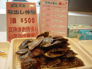 幼馴染との佐世保観光2日目。本日は佐世保の鹿子前(かしまえ)というところにある西海パールシーリゾートへ行って来ました。ここの前の道路は良く通るんですが、休日ともなると、家族連れなどでとっても賑やかなんですよ。週末は結構イベントも多くて、楽しめるみたいです。まずは、パールシーセンターという建物の中にある水族館へ。ドームシアターとかもあるんですが、あまり興味がなく、素通り(笑)水族館の入り口には、真珠の玉出し体験コーナーがありました。 九十九島沖は真珠の養殖でも有名なんです。他にも牡蠣、鯛、ハマチなど、養殖業が盛んです。この真珠貝の中から、自分で好きなのを選びます。ナイフを貝口の隙間に差し込み、貝柱を切る様に開いていきます。開いた貝の中の袋の中に真珠玉が隠れてるので、袋を破ります。するとほら、出てきたでしょ~♪これは、そのまま持って帰ってもいいし、加工してもらってもいいんですよ。私は、真珠貝の貝殻に乗せてもらって、持って帰ってきました。幼馴染は、もう1回玉出しをして、真珠玉を2つにし、イヤリングを作ってもらうことにしました。加工費は1500円。10日前後でお届けになるそうです。しかし、この真珠玉。色が色々違うんですよ。私のは、うす~いブルー。幼馴染はホワイト。他にもほんのりピンク色とか色々あって、出てきた色で恋占いもできました。真珠玉だし体験・1回500円、こられた時はぜひどうぞ♪次は九十九島巡りをするために、パールクイーンに乗りに行きました。他にも、ヨットセイリングやシーカヤックもあります。始めはヨットに乗ろうとしてたんですが、この日は風が強かったので、パールクイーンにしました。所要時間およそ50分。天気も良かったので、気持ちよかったです。船長さんらしい人がずっと島の名前とか島の言われとかを教えてくれました。↑この島。名前は忘れましたが、戦時中は潜水艦に間違えられたとか。確かに、潜水艦が海上に浮かび上がった時のような形に見えますね。九十九島は、「それくらいたくさん島がある」って意味で実際は、208つの島があるそうです。島の条件としては、満潮になっても隠れないことと緑が生えてること。だから、とっても小さな島もあります。パールクイーンは乗船料1200円ですが、水族館に入る時に払った600円の券を見せると、1000円になります。券は捨てずに取っておきましょう。また、逆に、パールクイーンの券を見せると、水族館は400円になります。パールシーで遊んだ後は、またもや佐世保バーガーを食べにGO。パールシーの中にも佐世保バーガーの店があるんですが以前嫌な思いをしたので、二度といかない!と心に誓っております(笑)ここはやはり、一番人気の「ヒカリ」へ。平日だから、待ち時間も30分ですみました。30分の待ち時間の間、暇つぶしと言っては申し訳ないですが海上自衛隊佐世保資料館へ。ヒカリのすぐそばで、ちょっと時間潰すにはいいかな~と^^;出てくる時に、玄関にいたおじちゃんに「あんた達はもう行くとね!まだ良くみて行かんば~! そこで(ヒカリで)パンでも食べようって思うとるやろ~。」と言われました^^;バレバレですね(^_^.)「昨日のより美味しい~♪」と幼馴染。だねぇ。確かに、こっちのが美味しい。もっと色んな店のハンバーガーを食べさせてあげたいけど胃袋に限界があるので、今回はこれでおしまい。次は雲仙へ、ガラス工房体験に行こうと話しながら帰ってきました。ちなみに、去年の3月に幼馴染が来た時は大村で、イチゴ狩りから体験できるいちご大福作りに行ったけなあ。佐世保で楽しんでもらえたので、私は満足←自己満足(笑)楽しい楽しい2日間でした♪おしまい♪