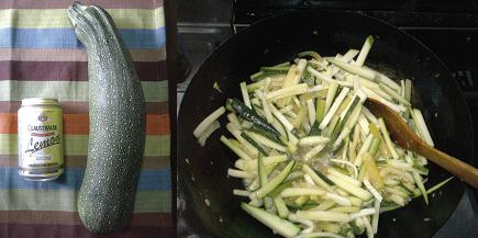 拍子木切りにしたズッキーニをじっくりじっくり炒めて、