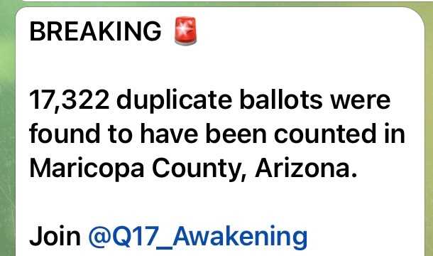以前から証拠はたくさん上がっているのですが、トランプさんはそれを強引な方法ではなく、正当性のある方法で皆が気づくように、またアリゾナ州議員や選挙に関係した人たちに反省して改心するチャンスを与えていたのですが、見事に裏切られたようです。