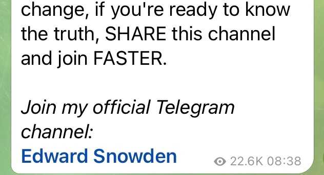 極秘情報の中枢にいたスノーデンさんですから、何が起きても、何を聞いても、私は信頼できる情報だと思いますので、もしこれから起きることや隠されてきた真実をいち早く知りたい方はテレグラムに参加されることをお勧めします。(全部英語なので苦手な人は翻訳ソフトを利用されるといいかもしれません)
