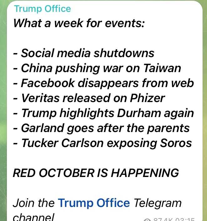 皆さんこんにちは、皆さんの多くが、ここテレグラムに引っ越しをしたように、僕もここを選びました。テレグラム メッセンジャー アプリが全てのプラットフォームの中で一番安全だからです。今日、2021年、10月5日は皆さんが長い間待ち望んでいたことの始まりの日です。
