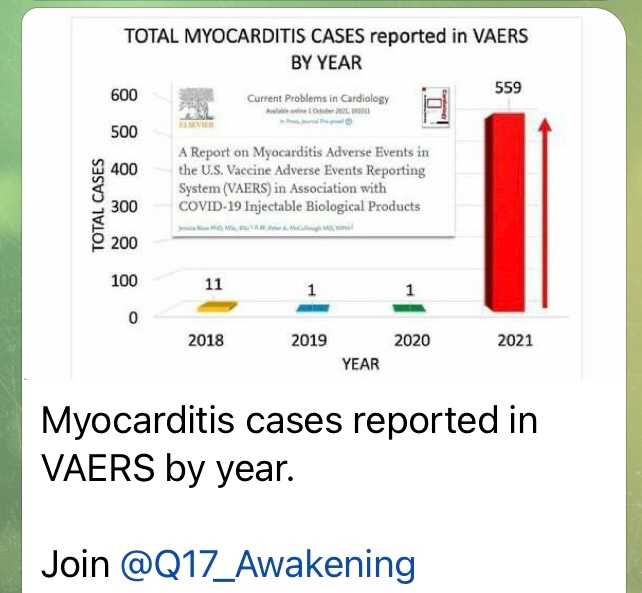 こちらはアメリカVAERSに報告された心筋炎になった人の数