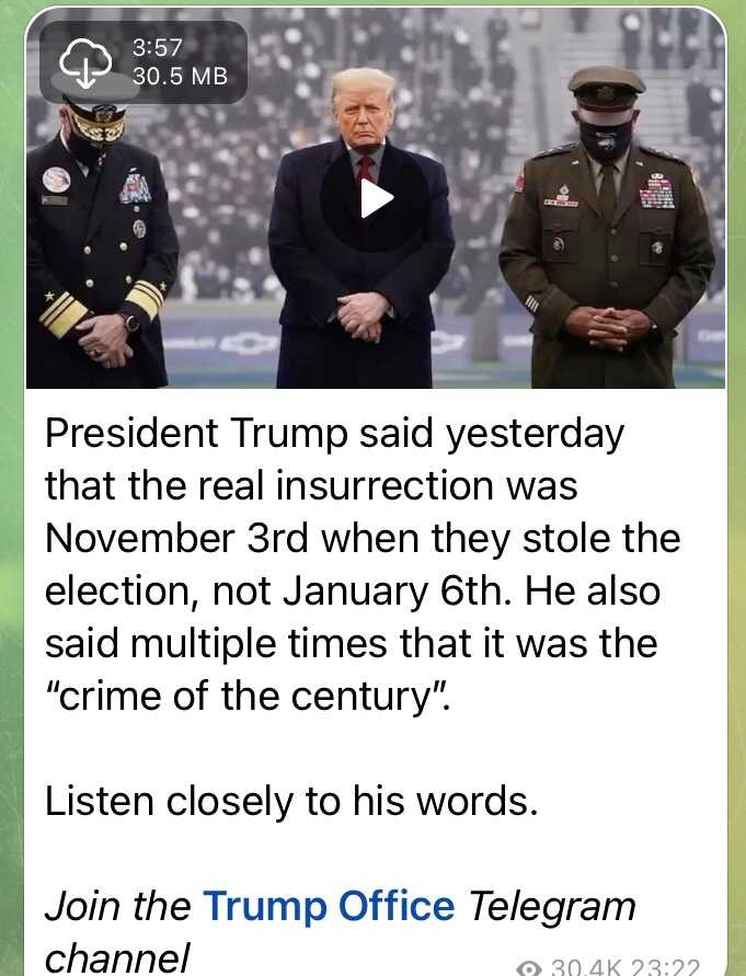 トランプ大統領が昨日、本当の謀反は11月3日、彼らが選挙を盗んだことだと言いました。そして何度も、”それは世紀の犯罪だ” と言いました。
