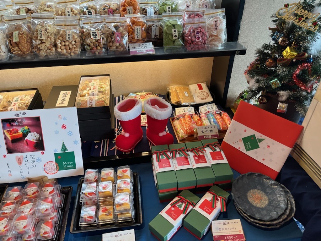 11月、老舗の和菓子屋、福屋さんの店長さんから電話がありました「吉祥天様、今年のクリスマスデコレーション和菓子、如何いたしましょう」ああ、もうその季節1年過ぎたのか・・・一瞬感慨にふける吉祥天 ニ瞬目に気を取りなおして「します、します、今年もお願いします」10年ほど前、チョコレートやクリームより和菓子の好きなお花の先生のお孫さんに、と、和菓子のクリスマスデコレーションケーキをお願いして、大好評をいただいてから毎年作っていただいて、和菓子好きの方達にお歳暮にお贈りしていますその時から店長さんには大変お世話になり、「職人さん達も楽しみにして張り切っています」とのことで、毎年違ったデザインのを作ってくださり、皆さん心待ちにしていてくださいます そして24日、クリスマスイブ お昼前に受け取りに行きました 和菓子のお店もクリスマス「今年もありがとうございます」と店長さんがにこやかに現れ「あちらに4個ラッピングしてございます、(今年は5個お願いしました)写真お撮りになるでしょう?1個だけ包まずに置いてございます、お持ちしますね」・・・さすが評判の名店長さん・・・「ありがとうございます、お気遣いいただいて」 そしてこれが今年の和聖菓 外からは見えませんが台座の一番下は刻んだ栗たっぷりの栗羊羹、その上に山芋たっぷりの真っ白な蒸し菓子その上にひし形に埋め尽くされた緑とピンクの羊羹大地と積もる雪、そしてやがて来る春を待ってピンクと緑散りばめられた金箔は降る雪金の星と青と白の雪も寒天で作られた和菓子、星はゆず、雪はペパーミントの香り・・・そしてその上を駆けてゆくサンタクロースもトナカイもプレゼントを入れた大袋もみんな和菓子でできています松ぼっくりや木の葉もベルももちろん和菓子、積もる雪はきんとん、サンタさんがトナカイと雪の森の上をプレゼント配りに飛んで行くところでしょうね「ありがとうございます、皆さんどんなに喜ばれることか」とお礼を言うと「よかったです、ではお包みします」 真っ赤な箱の上にこんな熨斗紙をかけて 緑と赤の紐で飾り結びして、結びの先をくるんとカールさせて「お待たせしました」・・・これは店長さんの手それからは吉祥天サンタの仕事タクシーに抱え込んでクリスマスイブの地上を配りました夜に翌日に「おいしかった~」「今年も最高」「皆喜んでます」吉祥天サンタ、今年のお仕事無事終了来年もまた楽しみですよかったよかった、と満足の吉祥天サンタ