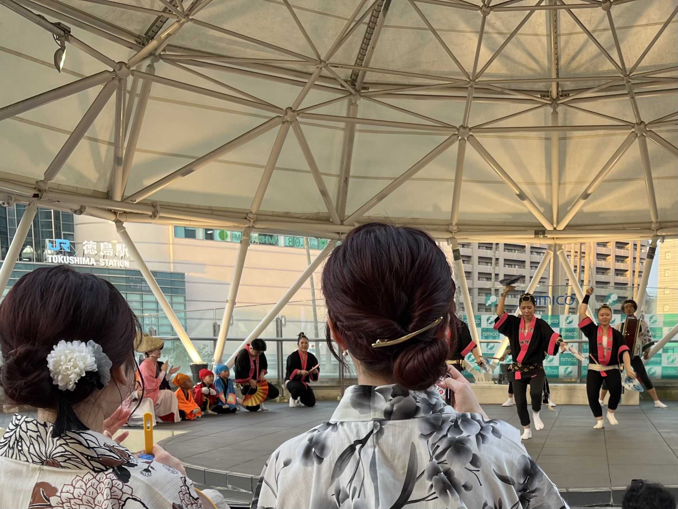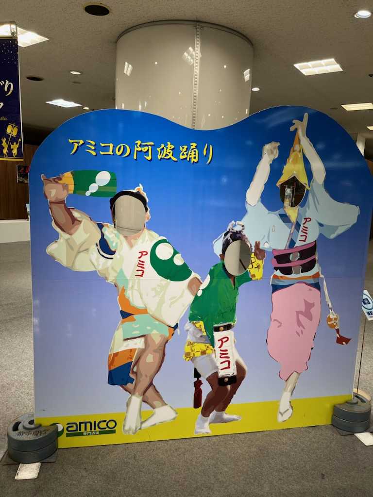 お久しぶりでございますこのところの連日35℃の暑さで、溶けてしまっていた吉祥天新聞を見ると「いよいよ阿波踊り開幕」の大見出し・・・これではいけない、と、曇りで少し涼しくなったのを幸いに街に繰り出してみましたまず駅前でバスを降り、商業施設のアミコ こんなのが設置されています徳島駅に向かって歩いてゆくと 高速バスが次々と降車場に停まって、帰省した人たちや観光客がどんどん降りてきました・・・バスはずっと順番待って後ろに連なっています そして市中央を流れる新町川に向かうと 駅前にこんな行列が・・・これは徳島ラーメンの店、まだ午前10時なんですが・・・ここって有名店だったのか そして新町橋・・・提灯や幟がずらっと並んでお客様お出迎え当日はこの辺りが踊り広場になって、踊り子さんや飛び込みの観光客でごった返します 橋の向こうに見えるのが市民の心のふるさと眉山街の真ん中に川や山があるのっていいな、と最近思うようになりました 橋の上から見た藍場浜公園・・・昔はこのあたりにずらっと藍蔵が並んでいました 奥に見えるのが演舞場、最後の点検、出店の用意で人や車がいっぱい 最近はこんな立て看板も・・・徳島連日35℃です 橋のたもとの浮き舞台、腕自慢たちの晴れ舞台後ろに流れる新町川にはクルーズ船が巡行して、ここの浮き舞台にも近づいて見せてくれます ここから先が新町商店街、昔は県下一の繁華街でしたが、最近は郊外に大型商業施設がどんどんできて、人通りも少なくなって こんな感じなのですが・・・ こんな行列ができていた・・・なんだなんだこの行列は・・・ここはアニメ専門の映画館、地下ではアニメのグッズが売られていますが・・・そっと覗いてみたら「鬼滅の刃」のポスター・・・すごい人気 映画館の角にはさらにこんな行列 さらに向こうからこんな団体が走ってきて行列に参加・・・すごいそういえば、徳島市では「マチアソビ」という企画があって5月の2日間、町中がアニメの街となり、有名な声優さんが来県してトークショーや映画上演、日本中からファンが参加、空路も海路も鉄道もホテルも満席、街はコスプレイヤーで溢れかえります これは見るだけでも楽しいもので、吉祥天もこの期間には街に繰り出します 阿波踊りにもコラボしたのかしら・・・そういえば駅前でコスプレした人達見たし・・・でもこの暑さでコスプレは大変だろうな・・・ アーケード出たところにある名物竹人形の阿波踊り人形の像阿波踊り期間中はこの前でも腕自慢たちの踊りが披露されます ここはダンス教室なのですが、阿波踊り期間中はお休みなので、ここを借りて休息場を作り、ここで冷たい飲み物や食べ物を提供して、収益を寄付します・・・只今準備中 吉祥天も何年か前、ライオンズクラブでこの先の空店を借りて、かき氷や冷そうめんを売りました 街中に張られた阿波踊りのポスター阿波踊りの前日に街を歩くと、あのサメ映画ジョーズ、のダンダンダンダンダン・・・というテーマ音楽がどこからか聞こえてくるような気がします 踊り期間中にはスマホもって出かけようか、と計画する吉祥天 面白いものがあったらまたアップします