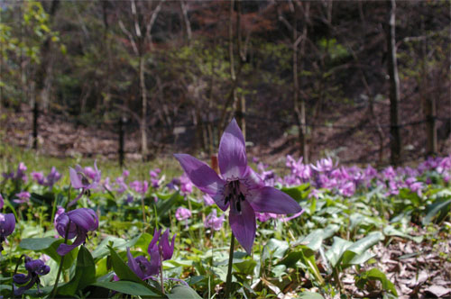 昔はカタクリの球根から片栗粉をつくっていたらしい。現在の片栗粉はジャガイモの澱粉からつくられる。園内の彼岸桜も満開でお弁当を広げている人たちもいました。