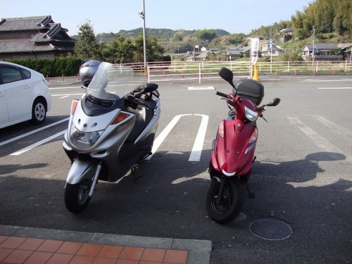 我が家に新しい相棒がやって来ました。通称『通勤快速』の『SUZUKI ADDRESS V125G』です。メーカーキャンペーンでGIVIのトップボックスが付いてました(^^)v火の国おやじ組でも2台が採用されており私ので3台目です。昨日の昼過ぎにショップに連絡して購入する事を伝えると早速登録に…そして今朝、ショップに行って支払いを済ませて自宅まで運んで貰いました。早速、健軍神社に行って御払いを…御払いが終わったあとはおやじ組でアドレスに載ってるメロさんの所に…同じくアドレス仲間のケージさんにも連絡を取りメロさんの所に集合♪ケージさんのアドレスは点検の為ショップにあると言う事で今回は3台揃い踏みならず。折角だと言う事で熊本新港まで走る事に♪中々良い加速で一般道では十分な性能です。メロさんが撮ってくれた相棒とのツーショットです(^^)v