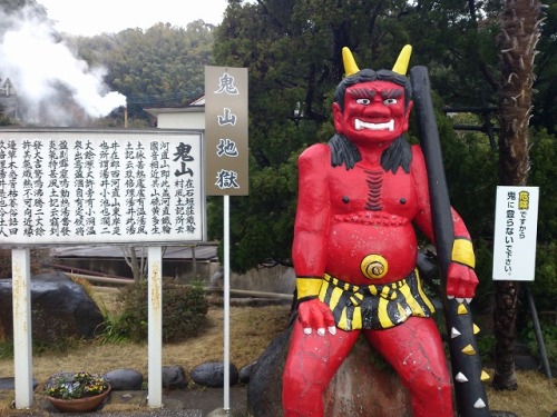 会社の同僚と『大人の遠足』と称して別府へ日帰り観光に行ってきました。参加者は5名。朝9時に同僚の家に集合し車1台に乗り合わせて別府へGO!!テーマは『別府名物を楽しもう!!』って事で…最初の目的地は『鬼山地獄(通称:ワニ地獄)』です。赤鬼の像がお出迎えです。ワニの餌やりを見物した後は『海地獄』へ移動です。真っ青な地獄が特徴です。地獄めぐりの最後は間欠泉の『龍巻地獄』です。遠足の昼飯は大分名物『とり天』発祥のお店『レストラン東洋軒』です。やっぱり『とり天』は外せないでしょう。皆で1皿注文です。とり天以外を各自で注文…『マーボ豆腐&カニ玉定食』を注文しました。昼食後は『別府タワー』の予定でしたが定休日で上れず…(T_T)取り合えず『竹瓦温泉』で一風呂浴びて計画を練ることに。『別府タワー』の代わりに『ビーコンタワー』に上ることに…(写真なし)『ビーコンタワー』の次は『十文字原』からの眺望を楽しみました。その後夕方からの飲み会へGO!!でした。