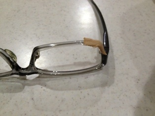 今日は所属する野球チームのリーグ開幕戦。所属チームは会社のチームではありませんが、異業種のメンバーと楽しい野球ができ、スゴく大好きなチームです。今日は3試合目が自チームの試合で、1試合目から他チームの試合を見てました。そしたらよそ見をしている時に、鋭い打球のファールボールがすぐ顔の横を通過。危うくけ大けがをするところでした。 そして自分たちの試合。私は2番セカンド。第1打席は、2球目がデッドボールに。今でも脇腹が痛い。第2打席は。。。。これも2球目が、なんと、自打球が右目あたりに当たり、メガネが吹き飛び、レンズが外れました。目はどうもないですが、メガネはフレームが割れてしまいました。レンズは大丈夫でした。6000円位の安いメガネ。今はテープで留めています。強力接着剤を付ければおそらく復活します。このメガネは野球用にしましょ。