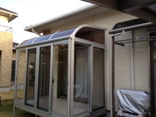 サンルームの工事が完了しました。もともとあったテラスと縁側を和室側に移設し、その場所にサンルームを作りました。これで雨が降ってもへっちゃらです。お母さん、大喜び!!!