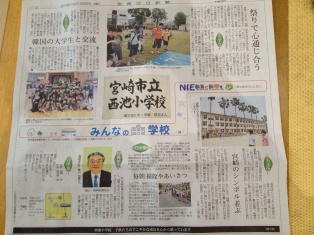 5/22付の宮日新聞に愛娘の通う西池小学校が特集掲載されました。6年生が紙面を作成。題字は知り合いの娘さんが書かれていました。また、記事の中に「西池フェスタ」(バザー的なイベント)の記事があり、模擬店で焼きそばの販売があると書かれています。昨年の西池フェスタでは、その焼きそばを私が作りました。なんか嬉しかったです。
