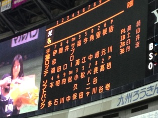 メインの用事は日曜日なので、前日はドームでホークスの応援です。マリンズとの2回戦、先発は岩崎と唐川。「よーし」って感じで応援モード全開で臨みました。座席もライトスタンドで応援団が目の前。いい席です。 しかし、相手投手の唐川は調子が良過ぎ、7回2アウトまでパーフェクト。岩崎も初回に与えた1点以降、なんとか持ちこたえていましたが、8回にエラーによる失点もあり、結局、1:4で敗戦。今シーズンの観戦1試合目はなんとも面白みのない試合でした。ちょっとホークスの貧打は重症かも。。