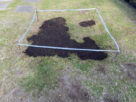 禿げたところに芝種🌱を撒いて目土を入れています。