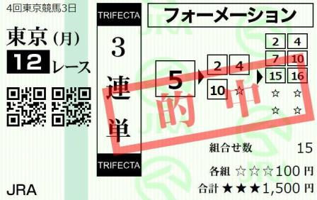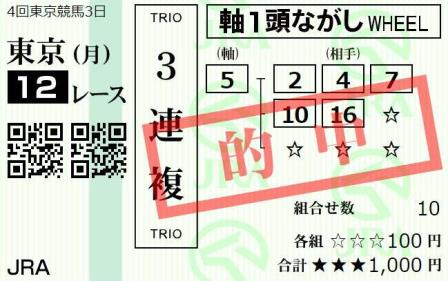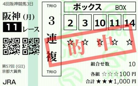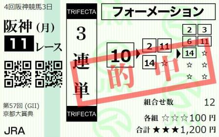 京都大賞典、東京12Rを、どちらも ​◎→▲→△​ でゲットして、