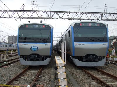 2日連続で鉄道イベント参戦…ってどうよ?(笑)今日は、相模鉄道の新型車両11000系デビューイベントに行ってきました。そもそも、相模鉄道(相鉄線)自体、乗る機会がほとんどない。今回で3回目じゃないかなぁ…たぶん。どちらにしても横浜に行かなければいけない。昨日と同じだと芸が無い感じなので、今日は都営浅草線~京急線経由で横浜。そこから、「撮影会」会場のある相模大塚駅まで移動。会場入口で11000系の特製シールをもらう。11000系2編成並べて留置。1編成のみで少し大きく撮影。1編成のみだったけど車内見学も出来た。最近製造される車両のほとんど車内情報装置が付いてますね。11000系も付いています。ドア上2画面です。車内の11000系デビュー記念の飾り付け。ちょっと変わっているなぁ…と思ったのは車両の製造元。全ての車両を確認した訳じゃないのですが東急車輌で製造した車両と東急車輌と新津車両製作所(JR東日本)で共同で製造した車両と2種類あるようでした。11000系の撮影を終えて、11000系デビューイベントの二俣川(駅)会場へ移動。相模鉄道グッズやプラレールの展示。今回買った物は…相鉄10000系のネクタイピン(割引価格1000円)11000系デビュー記念の手ぬぐい(300円)相模大塚駅のデビュー記念入場券(硬券・11000系ポストカード付)(140円)相鉄線は、なかなか乗る機会がないから楽しく、興味深かった。相鉄線車両(在来車)の窓ってボタンで上下する「自動窓」なんだね…びっくりしました。