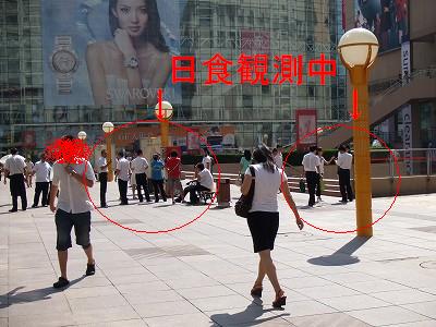 一昨日。「世界中の人が祝ってくれるんだ~(笑)」と7月22日誕生日の彼女は言った。「ま、みんな7月22日は注目はしているね。」と私。今日も単独行動日なので、まずは部分日食から(爆)高いところから見た方が良いような気がして労働公園(緑山)へ向かう。事前に調べた大連の部分日食は9時39分(大連時間)75.8%(食の最大)とのこと。労働公園へ向かう道すがら、仕事そっちのけで日食観察をしている人を多数見る(笑)労働公園の広場で「食の最大」を見た。amazonで購入したレンズで見ると欠けている太陽がしっかり見えた。(通りすがりの親子にも貸してあげたら喜ばれましたよ)写真だと分かりにくいですが、肉眼で見るとくっきり見えた。7割程度太陽が欠けても普通の明るさでしたね。少しは暗くなるかとも思ったのですが・・・その後、いつものようにリフトで上り、カートで下りてきました。(この組み合わせで50元。以前は40元だったよなぁ・・・)このカート。外国人(自分もそうだけどさ・・・)に人気があるみたいで、今日は行列でした。つづく(?)