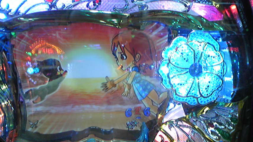 本望のエントリーなり(笑)…最近、多いな(ひとりごと)倖田來未さんのパチンコ(KODA KUMI LIVE IN HALL 2)そもそも、この「♪愛のうた(アニメ系)」の演出が出るのが珍しいのにラムちゃんとくーちゃん(倖田來未)が無事再会できる=当たるなんて…(喜)なんで携帯カメラで撮影できたかというと…この直前に盤周りのLED「レインボー」色+大当たり直撃音がした後に(SANYO製品なので、「海」系のサンフラッシュと同じ音です)「愛のうた」演出が始まったので『これは当たるでしょう?』と余裕で撮影準備に入ったからです。…それでも、ベストショットではないですけどね(苦笑)だって演出が見られて、さらに当たったから感動してしまっていたのさぁ(爆)