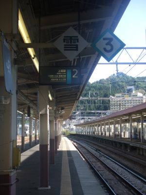 「ツーデーパス」2日目結果的にトンネル駅を2つ見学する旅になりました。行ってみたかったのだ日本一のもぐら駅 土合駅(行程)大宮(6:34発)~上越新幹線とき301号~高崎(6:58着)○朝食は駅弁「祝1000号はっこう弁当」(当の字は旧字)を待合室で(笑)○自由席利用…一座れて良かったから○200系で「ポケモントレイン」でした高崎(7:10発)~上越線 723M~水上(8:13着)○高崎駅で念願の駅弁「朝がゆ」(350円)を入手!!○水上駅はホームを階段経由で移動…でも接続を取るので大丈夫水上(8:21発)~上越線 1731M~土合(8:30着)○土合駅鉄道ファン、登山客で結構下車した(運転本数も少ないし)駅まで車などで来て下りホームを見学する観光客も結構いる426段は大変だ…休み休み上って15分くらいかかったこの写真…とても駅の階段のイメージじゃないでしょ?426段の後に24段の階段が待っていた(泣)下りホームトイレが下りホームにあったのが意外!上りホームは地上駅土合(9:56発)~上越線 1733M~越後湯沢(10:21着)越後湯沢(10:39発)~上越線・北越急行線 快速 3832M~まつだい(11:30着)○北越急行線は、「ゆめぞら2」車両(2はローマ数字)○乗務員と別に社員が乗車。車窓案内をしてくれる。いいサービス!○北越急行線はトンネルだらけ、それを逆手にとっての車内映像サービス○普通列車でも時速110km運転。本当速いと思った。○北越急行線の各駅には開業10周年記念として片岡鶴太郎氏がデザインした駅名表が設置されている○まつだい駅前には前衛的なオブジェがいくつか…ゆっくり見たかったなまつだい(11:55発)~北越急行線 835M~美佐島(12:17着)○「天地人」がラッピングされた車両○美佐島駅・列車が来ないとホームに立ち入れない(乗務員がドア操作しているそう)・ホームへのドア、出口へ向かうドアの2つドアがある・この2つは同時には開かない構造・このホーム前の「待合室」(実際小さい待合室もある)にいると列車通過の前後すごい音がする・ま、この音を体験したかったんだけど(笑)・駅の周りは、ペットの葬祭場以外は見つけられなかった・地上部の駅舎には畳敷きの休憩室がありくつろげる・この休憩室に「ノート」があったので書き込む(笑、土合駅にもあったので書き込んだ(笑))美佐島(13:16発)~北越急行線 837M~六日町(13:26着)○「ゆめぞら2」車両○六日町階段経由の乗り継ぎ…六日町(13:29発)~上越線 1736M~越後湯沢(13:50着)○駅構内「ぽんしゅ館」の日本酒入りの温泉に入る(800円 貸しタオル・バスタオル付)・日本酒入りというけど日本酒の匂いがするわけでなく…(笑)・シャワーを浴槽の方にバシバシ飛ばしてくるガキ少年がいて、けっこう腹立った○越後の酒の有料試飲コーナー(500円で5種類の日本酒が飲める)・コインを入れてボタンを押すと日本酒がでてくる・おちょこ一杯でも5杯飲むと結構酔うもんだね(爆)○お土産を色々購入○駅構内の立ち食いそばで「天地人そば」(500円)を食べた・大根おろし、梅干し、山菜がのっているのが特徴…天地人との関係は?→このそばに限らず天地人関係のグッズなどは色々なとこて見ましたよ→なんだかんだ言って大河ドラマの影響力ってすごいですね…越後湯沢(15:38発)~上越新幹線 Maxとき330号~大宮(16:34着)○自動指定席券売機の側で携帯操作して予約(笑)「ツーデーパス」初日、2日目と新幹線、特急の料金は別として乗車券だけで言ったら・伊豆急行線の伊東~片瀬白田の往復・東武鉄道の地元駅~新越谷の往復のみ追加で支払っただけ。そう考えるとツーデーパス5000円は使いようによってはとても安く広く旅ができるんだなぁ…と実感した旅でした!…さすがに明日はのんびり過ごすぞ(多分・笑)
