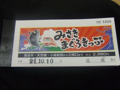 京急電鉄が発売しているお得なきっぷみさきまぐろきっぷ(品川発2,980円)このきっぷは京急線往路乗車券(逆戻りでなければ途中下車可)京急線復路乗車券(逆戻りでなければ途中下車可)京浜急行バスフリー区間乗車券(三浦海岸駅・三崎口駅発着の一部路線)選べるまぐろ食事券(参加12店舗から好きなお店1店選べる)選べるレジャー施設利用券(以下の内1つ選択)・京急油壺マリン-パーク入園・城ヶ島京急ホテル日帰り入浴・ホテル京急油壺観潮荘日帰り入浴の5枚が1セットになっています。このチケットを利用して日帰り旅をしてきました!日帰り入浴も魅力的だけど、水族館フリークとしては「マリンパーク」を選択(笑)決して3施設の内、マリンパークが一番高いからではありませんよ(笑)(大人1,700円)少々面倒だけど東武鉄道と京急電鉄がコラボしているキャンペーンの「記念品」をもらうために押上~エアポート快特~品川で一旦下車して窓口精算と「みうらまぐろきっぷ」を購入。記念品ももらう(笑)次に来た「快特三崎口行き(前8両、後4両は浦賀行き)」に乗って三崎口駅まで…意外に時間がかからない。駅前から路線バス「油壺行き」に乗車して終点下車。「マリンパークは目の前だろう?」と思っていたんだけど…バス停からは少々歩く。この歩き区間無くなったら更に便利だと思うのだけど…「京急油壺マリンパーク」到着!多分2回目の訪問だと思うのだけど(あまりはっきりしていない)敷地を広く取っているためだと思うけど多くの水族館にありがちな(それも分からないではないのですが…)「ぎっちり展示」ではなく余裕を持った展示なのが好印象。色々興味深い展示があったけど、今回気に入ったのは大きな「クエ」この唇の厚さがすごいと思う。似ている人いるよね?好奇心旺盛な「ハリセンボン」私の方を「ジッー」と見ていたんですよね。見つめ合う一人と一匹(笑)ペンギン「ペンペン」私は見ていなかったのですが「志村どうぶつ園」の企画でDAIGOさんが3ヶ月間子育てをしたペンギン「ペンペン」機嫌悪かったのかなぁ…ずっと岩の方を向いていました(苦笑)この水族館で特徴的だなぁと思った相模湾での水産研究の歴史の説明はちょっと見入ってしまいました…のんびりと「マリンパーク」での時を過ごし、元のルートで三崎口駅に戻る。「まぐろ食事券」を行使しないと(笑)12店舗の中から三崎口駅前の「海鮮 あいだ」さんを選択!「あれ…ちょっとアレかな…(汗)」と思った店頭なんですが中に入れば、いかにも「年季が入った板さん」が二人いて『あら意外、綺麗な店内だわ…』外見で判断してはダメですね(苦笑)16時頃と中途半端な時間のためか?客は私だけ…カウンター席に座る。セットされているメニューは「地物セット」まぐろなど寿司9貫、玉子、あら汁、茶碗蒸しが付くまぐろも口の中で溶けちゃう感じで美味しかったけど「塩とレモン汁」で食べる白身魚が美味しい!肝付きのカワハギの寿司が特に良かった~茶碗蒸し、アラ汁(アラいっぱい)も美味しい…それと冷蔵ケースに入っている赤貝(大好き!!)が気になる!「オススメ」の中から「アジ」それに「赤貝」を別注文!(2個ずつ頼んでいますけど、1個注文でもいいそうです。嬉しいですよね!)「これ少ないんですけど良かったらどうぞ!」と『赤貝の貝柱(で合っているかな?)の煮付』をオマケしてくれた。いや…一見客なのに嬉しいサービスだなぁ…写真で見ても分かると思うのだけど、綺麗な肉厚のアジでしょ?いや、別注文して正解だった。値段を聞かずに注文したのでちょっと会計心配したのだけど別注文分は1,260円でした。(多分赤貝1個400円、アジ1個200円)電車代はかかるけど、それを考えても「海鮮 あいだ」さんへ再訪したいと思いました。美味しいし安い!!帰りは、「快特青砥行き」(1000系・手前の車両)に乗車。運転席(助手側)後ろの席に座り品川まで戻りました。おかげで珍しい「点滅信号」を見ることもできました。(多分私自身は初めて見た信号。ちょっとびっくりします)いや…楽しかった!