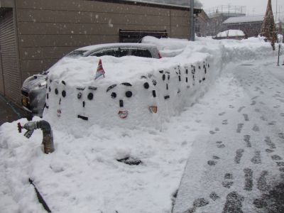 【昨日の続き】十日町駅到着。渡辺美里さんが出演する雪上カーニバルは18時スタート。車内(雪の夢列車)で「渡辺美里さんは18時半頃登場」と放送していた。「2時間位あるなぁ…」雪が舞っているので外にいるのは寒い…十日町温泉明石の湯へ行くことにした。十日町の至る所に雪像が作ってある。大規模な雪像もあるんだけど、多分個人作成だと思うんだが…つい笑ってしまった~(笑)駅から10分位(少し迷った…)で明石の湯に到着。入館料500円、レンタルタオルセット300円払う。「かすり」と「ちぢみ」では設備が違うため毎日男女を入れ替えているそうで、今日(20日)は男性は「かすり」風呂は、温泉(源泉が低温なので沸かしていると<お客とスタッフとの会話)と企画風呂(この日は、地酒風呂)、水風呂、スチームサウナ。500円でスチームサウナは有り難いなぁ…風呂に出たり、入ったりして40分くらい滞在してたかな?更衣室の窓から見えた積雪。結構積もっている。同じ敷地にあるキナーレに移動。同じ敷地というより明石の湯もキナーレも「十日町 越後妻有交流館」という施設の一部。で、キナーレ。十日町の名産品を中心に新潟県の名産品が手に入る。参加したツアーには、キナーレで使える「1000円分のチケット」が付いている。ここで有効活用…結局3000円位購入したのでOVERはしたのだけど(笑)キナーレから雪上カーニバル会場までは30分くらいと聞いていた。が、結構な距離があった。最初は平坦な道だったのだけど(それでも融雪装置<散水装置>があるため水を避けて歩くのは結構大変)だんだん山道になっていく!最初は雪なんかなかったのに、シャーベット状から本格的な雪道に変わっていく。それに上り坂だから息も切れる…油断すると転びそうになる(汗)