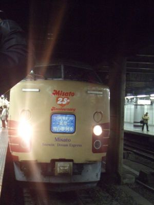 英語表記だとMisato Snowin'Dream Express…運転種別も団体ながら「急行」扱いだった模様。ダイヤ(手持ち時計)2月20日(土)上野14番線 12:40発大宮 13:06発熊谷 13:44着 13:45発籠原 13:51着 13:52発高崎1番線 14:22着 14:24発新前橋 14:31着 14:33発水上 15:18着 15:20発越後湯沢 15:50着 15:51発赤倉信号場 16:11着 16:24発十日町 16:32着上野、大宮、十日町以外は運転停車赤倉信号場は、上下列車行き違いのための停車籠原までは、比較的ゆっくり走行(先行列車かな?)水上付近から雪。トンネルを越えたら「雪国」の世界!車内外の装飾も凝っていました…(183系6両編成 6号車はスタッフ用車両)ヘッドマーク運転席横行先表示(車両間で撮ってみました~)乗車口周辺(私は5号車6C席でした)車内1車内2スピーカー設置。美里さんの特別番組(美里さんの曲・抽選会などなど)を放送。車内3座席カバーも特製。持ち帰り自由のお土産の1つになりました(アイデアだねぇ…)車内販売Suicaも使えましたよ~レシートに、ちゃんと列車名が入っていることに感動~特製弁当十日町の食材を豊富に使ったお弁当とのこと。山の幸豊富。美味しく、体の中が綺麗になっていく気がしました。(普段、野菜摂らないからねぇ…汗)乗車記念証裏は美里さんからのメッセージ正直4時間は「長いかなぁ…」と思ったんですが特製弁当、木村裕子さん(鉄ドル・取材で乗車されたとか)、美里さんの曲(約4時間流れっぱなし。それだけ名曲が多いってことだよね…)抽選会(各車両8名かな?ステージを特別席で見られる権利。外れた人も招待席で見られた)などなど、楽しかった。裏で動いていたスタッフの皆さんは大変だったと思います。そうそう…十日町駅では、お出迎えが…こういうの嬉しいですよね。私は見逃したのですが、上野駅では十日町スタッフによる「お見送り」があった模様。後ほど(気が向いたらですけど<おいおい!)UPするのですが十日町雪まつりのスタッフの方々の心づくしが良くて「また来ようかな?」と思ったほど。各地でイベントは多数行われていますが、外面の「ハード」だけではイベントは上手くいかないと思います。イベント開催担当の方は、十日町雪まつりイベントでの応対などの「ソフト」の免を参考にされるといいのではないかと…思いました。ちょっとハードかな?と思った十日町日帰りでしたが行って良かったです。=おまけ=ちょっと帰りは残念なことが多かったです。北越急行十日町駅ホームでの案内は外来者には不十分だと思います。特急はくたか25号は約4分遅れで越後湯沢駅到着。通常でも10分接続の上越新幹線Maxとき350号。越後湯沢駅で、初めて「自動改札機スルー」(駅では「きっぷ拝見を省略させて頂いております」と案内。なかなかいいなと思った)で、バタバタと新幹線に乗車しました…(汗)高崎駅で併合(既に入線しているE4系に併合・E4+E4)なんて珍しい体験もできたし(乗っている私は軽い衝撃感で「あ、併合したな」って気づく程度でしたけど・笑)