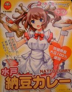 水戸駅で発見コミケ・メイドさん・水戸納豆・カレーのコラボ?(笑)だるま食品さんの一品。ガイアの夜明けでも紹介された?らしいです。味はこれからです(笑)