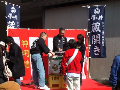 澤乃井蔵開き 試飲一杯、一杯は少なくても 盃を重ねれば結構な両さん像になるのさ? いやぁ~昼間酒最高!(^O^)/