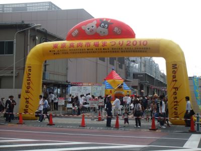 「東京食肉市場まつり2010」を見てきました。昨日(16日)、今日(17日)と東京食肉市場が無料開放され食肉の販売、肉料理の無料配布、革製品の販売。牛肉に関しては、毎年1つの銘柄牛にフォーカスを当てているそうで今年は茨城県の常陸牛がメイン。無料配布の肉料理(常陸牛を使ったしゃぶしゃぶ、モツ煮込み)他に豚肉料理(これも銘柄豚を使っていた模様)は時間制(10時と13時だったかな?)で配られていたんだけど、すごい行列。私は行列するのが基本的に嫌いなので放棄(苦笑)あーでも、常陸牛のモツ煮込みは食べてみたかったかなあ…私の目的は、普段は見学施設「お肉の情報館」を除き一般向けには公開されていない食肉市場や芝浦と場を見たかったから。それでも本当に一部しか公開されていなかったので雰囲気くらいしかつかめなかった。ま、それはそれで貴重な経験だったと思う。今回のイベントで一番「そうなんだ?」とびっくりしたことは牛肉市場からは生食用の肉は出ていない…ということ。「えっ?じゃレバ刺しとかはどうなっているのか?」と思ったのは私だけじゃないよね?(笑)お肉の情報館を会場にして、東京都芝浦食肉衛生研究所の検査官が(検査官が獣医師の免許を持っているということも今回初めて知った)説明してくれたのだけど、一般に流通している食肉の4~6割はO-157やカンピロバクターなどに汚染されていると言われているそうです。「汚染」と書きましたが、それは「人間」から見た場合で牛や豚から見ると、これらの菌がいることは普通でありいわゆる「病気」ではないということです。誤解の内容に書いておきますが、食肉になる作業工程中で検査官による厳しい検査が行われているため「人間が食するに適さない肉」(病気など)は廃棄されているため一般には流通していませんので、ご安心を(笑)話を戻すとO-157やカンピロバクターに汚染された肉だとしてもしっかり焼けばこれらの菌は死滅するため安全に食することができるとのこと。では「生食用の肉というのは存在しないのか?」というと牛と馬に関しては国が定めた「生食用の基準」というのがあるそうでこの検査にパスすれば、牛、馬に関しては「生食OKな肉」になるのですが…検査官は理由までは教えてくれませんでしたが昨年1年間東京食肉市場も含め全国の食肉市場で生食用の肉は流通しなかった…そうです。また、そもそも豚肉、鶏肉に関しては生食用の基準は無いそうです。びっくりしませんか?「では、一般に飲食店で販売されているレバ刺しなど生肉はどういうことですか?」という質問に対しては「本来であれば保健所が取り締まるべき事柄」なんだそうです…とは言え私の様にレバ刺し、ユッケなど生肉が好きな人の需要は少なくないでしょうから『黙認』ってことなんでしょうかね…?とは言え、最近飲食店での食肉の生食による食中毒は増えているそうなので注意はしておかないといけないんでしょうね…いやぁ…行って良かった。肉好きな私には大変勉強になりました。追記:検査官による説明は10名位で聞いていました。説明に入る前に検査官が「レバ刺しやユッケが好きな方は?」と質問したとき私を含めて7名くらいが手を挙げた。(そりゃ「食肉市場まつり」に来るくらいだから肉好きに決まっているでしょうて(笑))説明終了後、検査官が「それでも、レバ刺しやユッケなど生食されますか?(笑)」と質問したときに、ただ一人手を挙げたのは私でした。好きなんだから、そう簡単に諦められるわけ無いじゃない?(爆)でも、今後は注意はしたいと思いましたよ。おまけ:東京食肉市場のキャラクター「とん吉」さん(笑)他に牛の「モウ太」」さんがいます(笑)