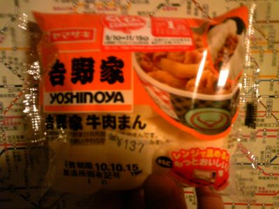山崎製パンと吉野家のコラボ!なんでも挟んでしまう「ランチパック」シリーズ。とうとう吉野家の牛丼を挟みましたか~(この形だと「包み込んだ」」が妥当?)普通に肉まんみたいに蒸して売っても結構売れるんじゃないかな?と思わせる味でした!