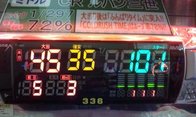 明日(30日)は、SUPER BELL"Zライブに参加するので(それも1部、2部の両方・汗)「体力温存しておいた方がいいだろう」…と外出せず。いや、したけど近所の1パチ(貸玉料金1玉=1円)で久しぶりに大勝いたしました(喜)なんかパチンコ台(ルパン3世 徳川の秘宝を狙え)が「コレ、壊れてないかい?(汗)」…って位当たったのでした。ちなみに、この台座ったときは『当たり0回 66回(打った)』だったってことは軽く自慢させていただこうかと…普段は負けてばかり(泣)なので許して(苦笑)…そんな訳で本日の歩数2003歩。計測初めて最小歩数でした(爆)
