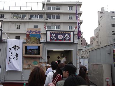 東京ビックサイトから都営バスで浜松町バスターミナルへ移動。200円でフジテレビなどのお台場の名所そしてレインボーブリッジを渡れるのだから、かなりお得だと思うな。(…と言いながらレインボーブリッジ走行中は寝ていたらしい?)浜松町に来たのは…また来ちゃったよ大つけ麺博…今日は第一章の期間。最初に「花の季」の「小麦ヌーヴォー2011」(+トッピング豚しゃぶしゃぶ)麺は細いのに「小麦の味ってコレだったんだ…」と感じることができる。最後のスープ割りは濃い麦茶で…「って大丈夫かな?」と思ったのですが、これが美味いんだなぁ…「そっか…麦茶も麦から出来ているんだものな~だから合うのか?」とびっくりさせられました。次に「中華そば豆天狗」の「魚系醤油つけ麺」(+トッピング飛騨豚のカルビ焼き)案内文に書かれていた『(要約)不慣れなので店(岐阜・飛騨高山)を7日間閉めて浜松町に来ました。すべて本店で仕込んできましたので器以外は全て本物です(笑)』の文章に笑わせてもらいました。「うわ!麺が多い!」今まで食べてきたつけ麺は麺の量が少なかったので油断しました(汗)『腹一杯麺を食べてくれ!』ということなんでしょうね~店主の心意気が嬉しい。つけ汁にも大きい飛騨豚チャーシューがごろっと入っていて食べ応えあり。塩味がつよいつけ汁も他にありそうで無い味で良かったです。お腹いっぱいの幸せな状態で会場を後にすると…夕焼け空に東京タワースカイツリーも楽しみだけど、やっぱり東京タワーって東京に欠かせない風景ですよね…