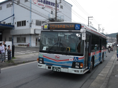 昨日に引き続き、スーパーベルズ(というか「さゆみん」か(汗))の追っかけ(?)をしてきました~京急ファミリー鉄道フェスタ2014会場は、(株)京急ファインテック久里浜事業所・・・京急久里浜駅です。既に、泉岳寺駅ホームで始発快特京急久里浜行きを待つ列を見ただけで「行き先は、鉄道フェスタですね?」という方々が多数いました(私も、その一人ですけどね)京急2100系ブルースカイ編成なので、座席はクロスシート。京急久里浜は遠いですが、座れたので楽でした。京急久里浜駅からは無料送迎バスに乗車。行先表示LED・・・気合入っています(笑・・・というより毎年なのでプログラム化されているのかも?)送迎バスを降りて、少し駅へ戻る感じで歩くと会場到着。なにはともあれ『整理券』を入手しないと!ということで配布しているグランドへ向かう。スーパーベルズが出演する『京急こども鉄道クイズ大会』を観覧するには整理券が必要とのこと。14時開始の整理券は12時から限定300枚配布とのこと。「12時40分過ぎているし、この人出だとダメかもな・・・」と思っていたのですが、残り僅かという整理券を無事手に入れる。そういえば、この時係の人から「何枚必要でしょうか?」と聞かれて「1枚です」と言ったら、ちょっと不思議な顔していましたね・・・今から思いますと(苦笑)整理券を入手出来たので安心したので昼御飯にする。会場で、崎陽軒が販売していた特別弁当(1000円)を購入。掛紙中身は、崎陽軒の代名詞シウマイと、崎陽軒も弁当に付きものの筍の煮物をはじめ盛りだくさんのおかず。ご飯も白米と山菜おこわと工夫されています。これ普通に駅で売っても売れると思う弁当だと思います。美味しかったです。クイズ大会まで1時間あったので会場内を見て回る。私が好きな「アント」です。車両を工場内外へ移動させるときに使用される作業用車。いや、なんで好きなんだかよく分からないのですが好きです。どこか体験運転させてくれるとこ無いですかね?(笑)あと、ちょっと不思議なアントらしき車両を発見。空港で見るトーイングカー(参考:茨城空港利用促進等委員会のページ)のようにも見えるのですが、どのように使われている車両なんでしょうね?旅客車両も見ておかないと!今、京急といえば見ると幸せになれるとか言われているらしい・・・1編成しかない『KEIKYU YELLOW HAPPY TRAIN』(リンク先は京急プレスリリース)京急色(赤色)、ブルースカイトレインと並ぶと、信号機みたいだな・・・なんて思いました(笑)『赤札号』・・・川崎大師大開帳の企画として走行中。だるま見えますかね・・・クイズ大会の時間が近づいたので会場へ移動。会場のすぐ側で、会場入りするTJレミアさんとさゆみんとすれ違い「こばぴょんさ~ん~(笑)」とさゆみんが声をかけてくれたのですが、突然だったもので反射が悪く「あ、さゆみん。おつかれさま~がんばってね~」と『せっかく声をかけてくれたのに、もう一工夫できんのかい?>オイラ』と軽く落ち込むorz会場受付で整理券を見せて入ろうとしたが、係員の方より入場は小学生以下と保護者のみということを知らされる(汗)でも、『外野』から見るのは自由ってことなので・・・写真にすると分かりづらいですが、外野でも結構見えましたよ。ミニライブ(本日のベルズは三人編成)、出店した鉄道事業者紹介、クイズ大会と時間をオーバーする盛り上がり(?)子供達がエキサイトしたクイズ大会が終わってベルズと南田さんの物販があり物販が落ち着いたところで恒例(?)のフォトセッション。(後列)車掌DJ野月さん、ホリ☆プロマネージャー南田さん(最近はご自身をテレビでよく見かけるような・・・(笑))(前列)久野知美アナウンサー、TJレミアさん、さゆみん(山本紗由美さん)目線バラバラだ~レミアさんしか来てない(笑)それと写真を整理していて気が付いたのですが、南田さんステージと物販では眼鏡をかけていて、フォトセッションの時は外してた・・・何か理由あるのかな?些細ですが気になります・・・(笑)物販テントの横で、仕事で来ていた手老善氏・・・私はてろーさんと呼んでますが(謎)・・・と情報交換(さらに謎)気が付けば、16時の閉場時間が迫っていました。送迎バスに乗り、京急で品川まで行き(横浜駅で反対側の下り線で人身事故が発生したのにはびっくりしました。また安全点検終了したとのことで3分程で上り線を運転再開したことに更にびっくりする)、品川駅構内でウロウロして(このことは明日以降エントリーする・・・かも)秋葉原経由で帰宅しました。本日の戦利品来場記念乗車券。裏は磁気券になっていて自動改札通れます。このうち京急久里浜から310円区間の乗車券は実際に使用。京急品川駅の精算窓口に運賃不足分を払うとき係員から「これ記念にされますか?」と聞かれたので当然「はい!」精算券とともに無効印を押して渡してくれました。無効印貰うか貰わないかで、ちょっと悩んでいたのですが、係員から申し出てくれたのは嬉しかったです