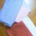 携帯で撮ったので、写りが悪いですが、順番待ちしている布地たちです。まだ、水洗いしていない布地も待機しています。先週、今製作中のスカートが完成していれば、手前の赤い布地で、スカートを製作する予定です。ちなみに、上の青いのが、ほかに2種類あるのですが、見えませんね。これらは、きれ屋ぽぷり さんのお得セットで購入しました。手前の赤いのが、これまた、下の布地は見えませんね。これは、コットンショップもっく さんです。今週末こそは、完成させねば、どうせ雨だしね。いまだにデジカメからの写真をブログにアップできず、悪戦苦闘しています。かわいい布地なんですけどね。残念です。今週末には、ぜひ一枚完成させたいです。