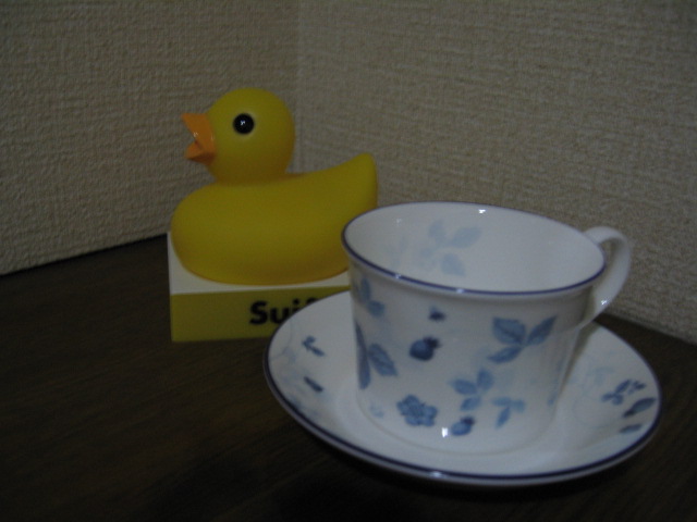 宅急便です。と予定もしていなかったので、もしかして、やっと、懸賞に当たった????何々何があったったのかな????っと思ったら、実家の母からでした。中身は、ティーカップとあひるのおもちゃです。ティーカップは、先日こちらに来ているときから気になっていたらしいのですが、私は、全然気にならないのですが、母にマグカップでお茶を出していたのですが、母はそれが気になったらしいのです。うちにだって、それくらいありますよ。ティーカップくらい、ただ、何で飲んでも、味って変わらないとも思うのですが、母に言わせると変わるらしいです。先日いただいたものがあったので、私に送ってくれたそうです。ついでにあひるのおもちゃも、かわいかったので一緒に送ったそうです。このあひるは、おふろに浮かべることが出来るそうです。このあひる以外に、半分サイズのカエルがあったらしいのですが、そちらの方が色がたくさんあったので、そちらにしようかなと思ったけど、おふろにカエルねと思い、あひるにしたそうです。すごく可愛いですよ。お風呂に浮かべて、ぼーっとしていると癒されます。