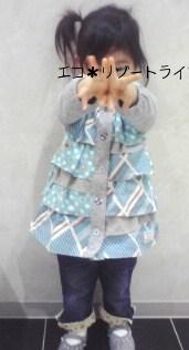 こんばんは~今日、3回目の日記です♪ 1回目はグランドスラム系、2回目はアースや3can4onのカタログを差し上げます(お気軽にコメくださいね)の日記でしたこちらのカテに投稿するのははじめてみなさんの着画拝見するのとっても参考になるし楽しいので、私もやってみましたこの間、30%OFFでゲットしたチップのフリルワンピです。チップらしい生地と形。一枚で結構インパクトあります♪カーディガンにしてもいいから、使い勝手よさそうです。実はべビーギフト&子供服 てんとう虫さんのレディースの福袋にこれのレッドが入っていたので、おそろで着たくなったのです 90cm12kg 90サイズワンピのはずですが、チュニックになっています。袖はぎりぎりぴったり。身幅が大きめのデザインなので、身幅はOK!100なら秋にも着られるけど、90だときつそうだな~この色で30%OFFは90しかなかったので、アウトしたら次女の成長を待ちます【チップトリップ11春50%OFF】チップトリップ/CHIP TRIP前開きフリルワンピース(80-100)【あす楽対応_関東】【あす楽対応_甲信越】【あす楽対応_北陸】【あす楽対応_東海】パンツは3can4onです 福袋に入っていたんだけど、かなり、使えます! ちなみに100サイズ。7分丈のデザインみたいですが、うちは9部丈くらいになってます↓似てるかな? 楽天でも3can4on取り扱いあるのがうれしいですね~ 3can4onレース使いデニム七分丈パンツ(ネイビー系(093))201104w この年末年始に結構子供服が増えたので、スタイリングもいろいろ考えて、おでかけ楽しみたいな
