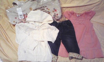こんにちは~今日もお届けものが3件。子供服中心にハワイ系インテリアも買いましたー請求こわいっとりあえずお買い物中毒の頭を冷やすために、ひきつづき、福袋の反省会をやっていきます。前の日記は私のもの編。今日は娘たちの分です。<長女2歳の分>・オリジナル子供服のマルタ 5750円(95サイズ)→11/22(月)18時予約販売スタート!マルタ★オリジナル福袋 2011価格:5,750円(税込、送料込)これはね~前フリのレビューがよかったので、期待してしまいました。。内容は使えないものなくて結構いいんだけどねー実際、この福袋買った後、実店舗で5000円くらいセールで買っちゃったもの。とくに、トレーナーは思っていたよりもいい!西●屋のトレーナー、2-3回でボロって感じになったけど、マルタはそんなことない。ギャルっぽくもないし、ほんとにふつーの感じが普段着にちょうどいいんだよね。レビュー悪いけど、たぶん、来年も今年程度のレベルだと思う。私は最低ランクの15000円分くらい入っていたから、3倍の金額入っているし。あたりの人は20000円くらい入っていたそうだから、レビューにかかれちゃうとお得感へっちゃうよね。まぁ、それが福袋だけどね。でも、買うかも? 専用品にはない、どきどき、楽しいんだよね~過去日記にネタバレあり。・3can4on 5000円(100)→これはよかった! 専用品だけど、全部かわいいっ来年もデザインよかったら買うセラフ好きな人におすすめ。過去日記にネタバレあり。・べビーギフト&子供服 てんとう虫 15000円(100)→予約中。2/14以降に届く予定数量限定!ご予約商品 ●メーカーMIX お楽しみ袋 15,000円コース● -送料別・代引手数料別-奮発したなぁっここのセレクトは、高品質だから、次女にもお下がりできそうだなーと思って気になっていました。ナチュラル・カジュアル系好きだし。いろんなブランド、チェックしてみたい。<次女0歳の分>・KP 10000円(80サイズ)→これは、正直、当たり♪人気アイテムばっかり、ピンクやパープル系で入っていたの。ミミちゃん付ばっかりだし。すべて今期もの。ただし、5点入りで合計は20000円ちょいだから、お得感はないなーKPもまてば50%offになるからね。でも、来年は長女と次女、両方買えたら買いたいなー。ネットも参戦したいけど、1分以内で売り切れるから、かなり大変だね・リシェス 10000円(80サイズ)→これは、ネタバレしてなかったけど、私ははずれでしたーー総額も一番低い設定のだったし、小物(帽子、バッグ)2点も入ってたよ洋服(タートル・カーディガン・ショーパン・レギンス)だけで計算したら、50%で買ったことに。。まぁ、小物は画像のよりかわいくて好みなんだけど。。ただ、リシェスは質がよくて大好きなので、また出たら買うと思います。以上、45750円<福袋 娘編 総評>一番の大物、てんとう虫がまだなので、暫定☆4つ。やっぱり、80サイズは最後まで残っていることが多いので、お下がりできる長女より人気の高い高品質ブランドになってます。来年は長女にKPとリシェス買いたいな~3can4on次女に買おう。マルタは~悩み中。てんとう虫さんがきたら、こちら更新しようと思います