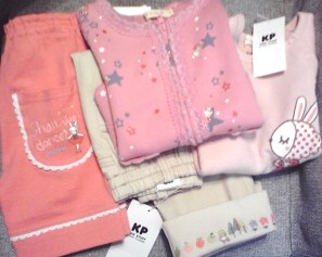 こんばんは~ お久しぶりです。日記を書いていない間はまっていたのは子供服のセール買いです市内のショッピングモールを回って、いろいろなブランドで買ってました~購入したブランドは、KP、fafa、マルタ、any fam、3can4on、セラフなどなど。。すべて50%以下で買いましたマルタとany fam、3can4onは60%以下ですなかなか定価買いできなくなっちゃいますね~とりあえず、今日の戦利品はKPのこちら【50%OFF】【代引不可】■KP(ニットプランナー)□スター★mimiカーディガン(80~95cm)◆KP 2010秋物 30%OFFセール◆KP ミミちゃんトレーナー-204930 【100~120cm】【30%OFF SALE】【かんさいジュニアスタジアム】みごとにピンク系多し!ですこだわりはうさぎのmimiちゃんがいるかどうか。。ベージュのパンツ100以外は95サイズです。ほんとは来年も着られるように100がよかったんだけど、100はほとんどなかったーーアウターも売り切れ! みなさま仕事が早いわ~いつからセールになるのか、店員さんに事前に聞いているのかな?とりあえず、4点で1万ちょいだったので満足ですKPの春のコレクションのカタログもGETかわいいのがいっぱい 目移りしちゃいます↓ちなみにこれも別に買いました♪ 100のレッド。【KP ニットプランナー】【TINKERBELL ティンカーベル】豊富な品揃え!自信があります!☆50%OFFSALE☆~★2010秋冬☆新作★~KP【ニットプランナー】お星さまバルーン☆=ミミちゃん&ひよこプリントラグラン/スタートレーナー80cm・90cm土日にFITHなど扱っているショップもチェックしましたが、カタログは予約の人や購入者しかもらえないんですね~いろいろなブランドのカタログ見てチェックしたかったなぁ。。でも、皆様の予約購入のブログ拝見していて楽しそうなので、いづれ私も参加してみたいです