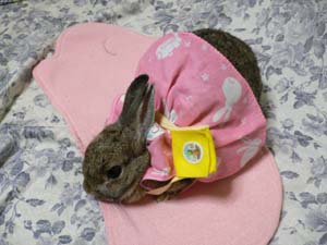 ピンクの生地に白いうさぎの模様で、とってもかわいい♪♪♪