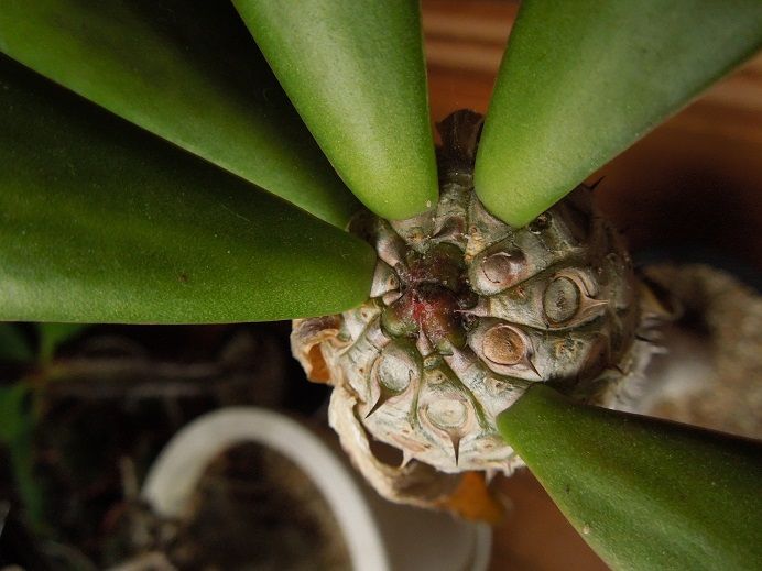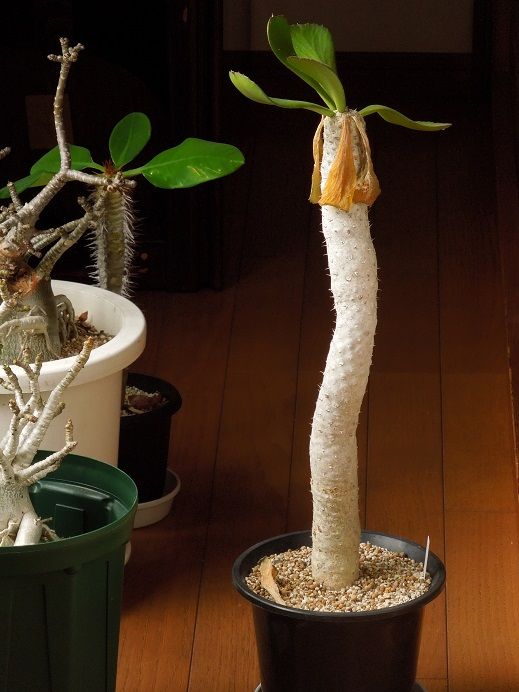 ガチガチの根鉢になっていたユニスピナ、7月初めに一回り大きい鉢に植え替えましたが・・・