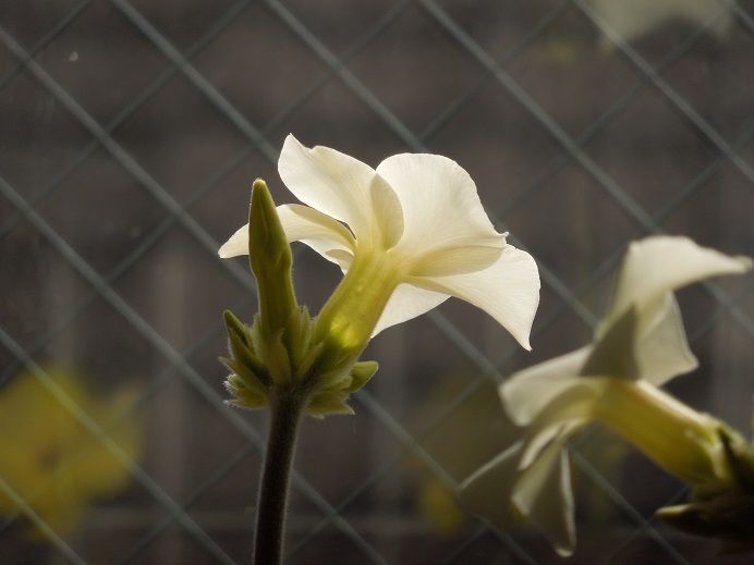 出窓に置いてあるえびす笑いとエブレネウムが良く咲いています。どちらも我が家のパキポでは大きいもので、毎年良く花を咲かせて種も採ることができます。